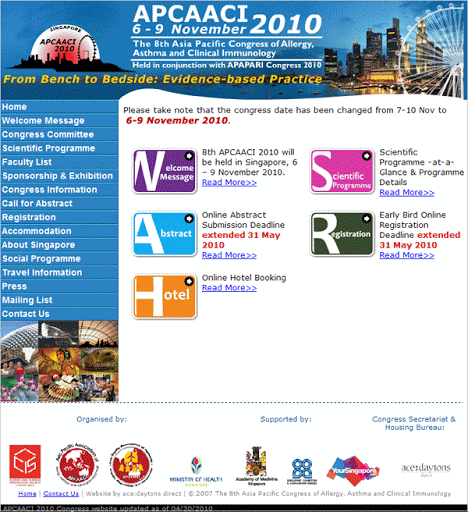 The 8th Asia Pacific Congress of Allergy, Asthma and Clinical Immunology (APCAACI 2010) - APAPARI Joint Congress was held from November 6 to 9, 2010, in Singapore